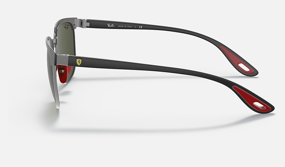 A Ray-Ban icon, redesigned with Ferrari attitude. This model delivers a classic and contemporary look, where agile and slim lines meet. The metal structure combined with dedicated lenses and rubberized temples is finished with red and black Ferrari details.