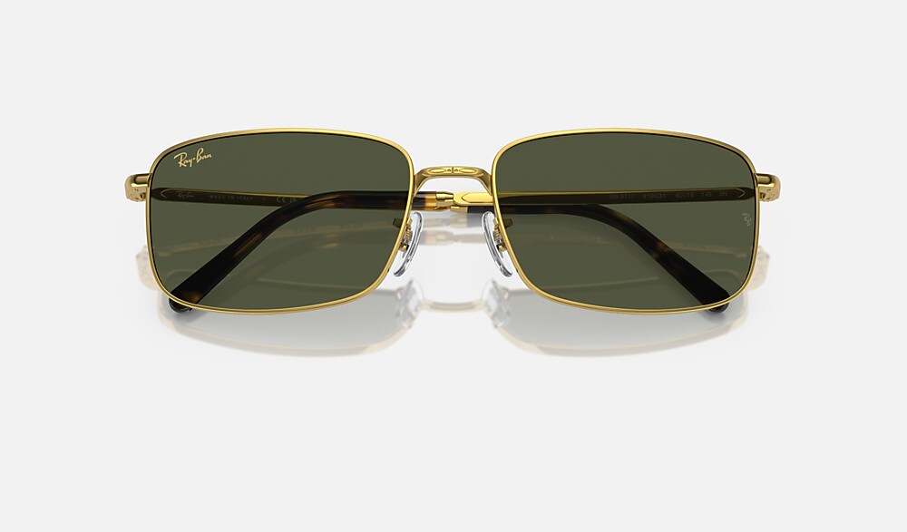 Ray-Ban RB3717 Sunglasses are a classic style designed for all genders. The metal frame with gold temples and green lenses exudes a refined, polished look. With the double D rivets adding to its overall appeal, this style will not fail to impress.