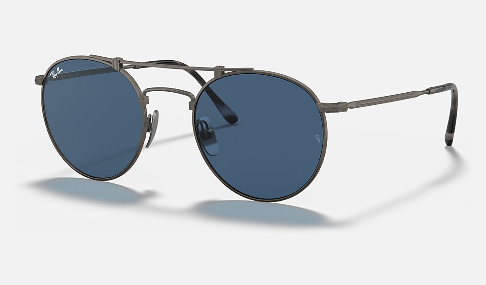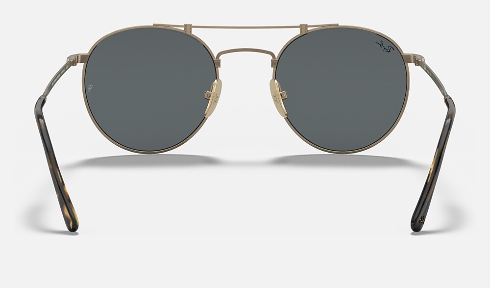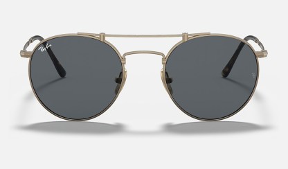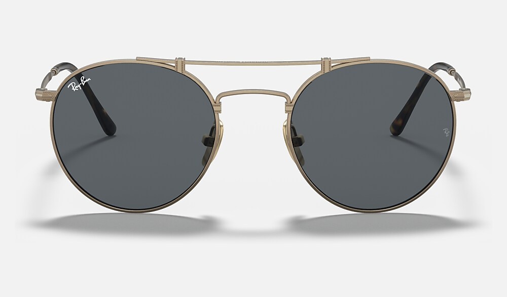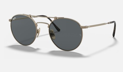 One of Ray-Ban's boldest editions now comes in Titanium, ultra-light and Made in Japan. Heightening the infinite potential of this single-minded shape with a fine double bridge, this titanium frame redefines the select appeal of premium materials. Pairing brushed metal finishes and meticulously crafted detailing, this distinctive look comes in white gold with G15 green lenses, antique gold with gray lenses, pewter with blue lenses, shiny white gold with crystal green polarized lenses.