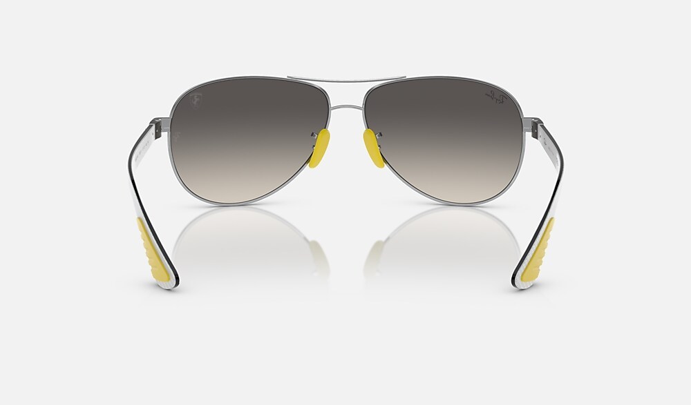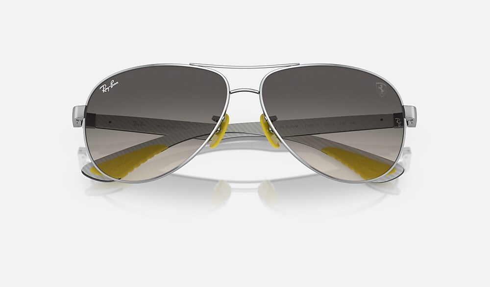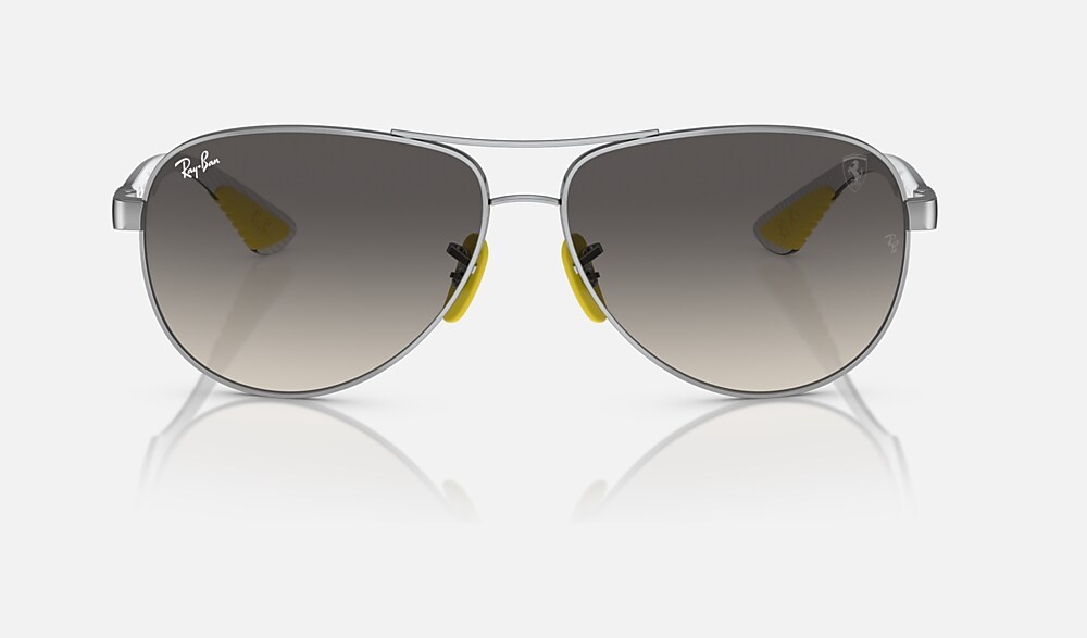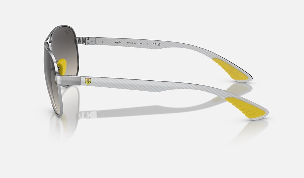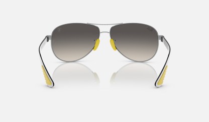 RB8331M Scuderia Ferrari Collection from Ray-Ban celebrates the iconic racing team with a bold and glamorous look. The frame is metal, with silver frame and gradient grey lenses. Always racing forward, always with style.