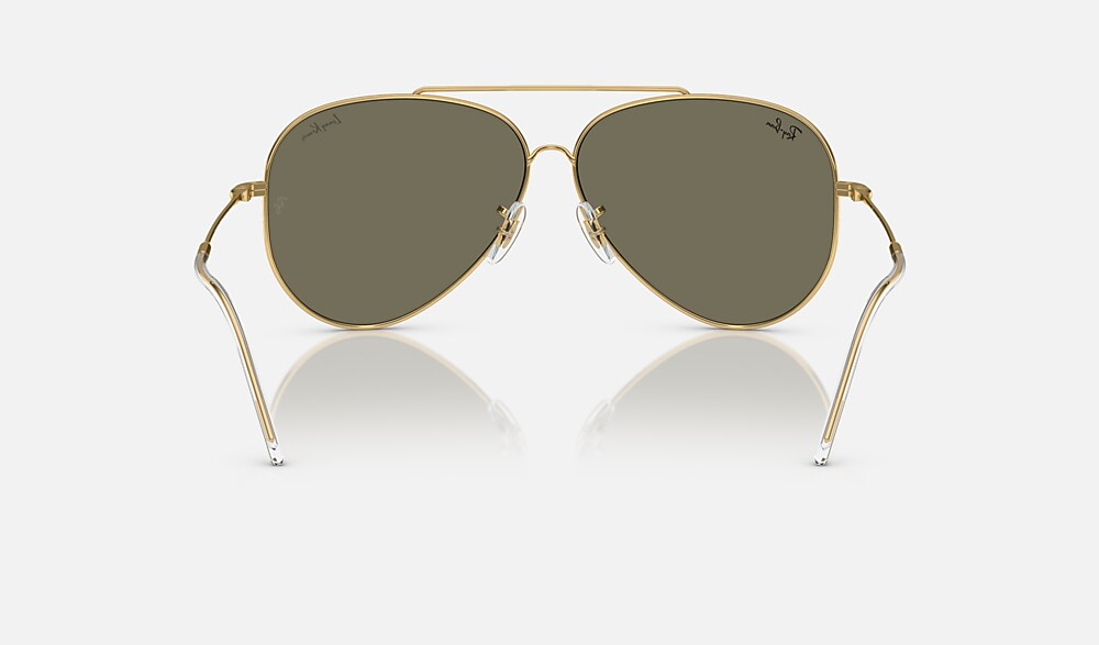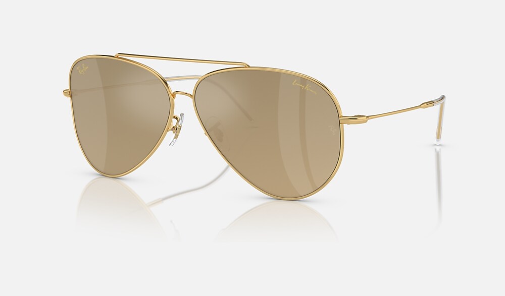 Icon meets idol for this legendary collaboration. This limited-edition gold plated Aviator Reverse is a celebration of defying convention, created with the inimitable artist Lenny Kravitz whose signature is etched on the left lens. This pair is made with an 18k gold-plated frame and 24k gold mirror lenses. Each pair comes with limited-edition packaging and a case signed by Lenny Kravitz. Only 1000 pairs worldwide.