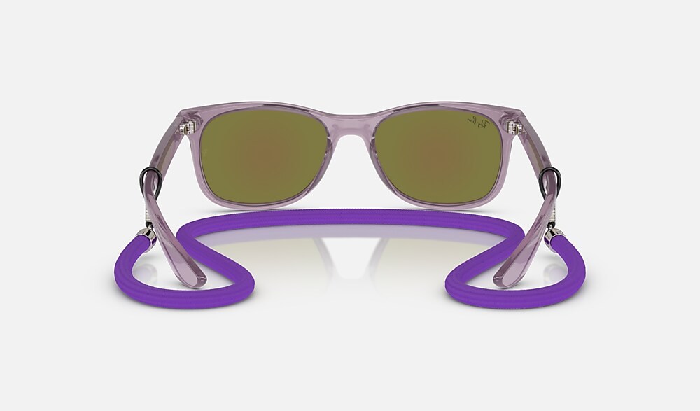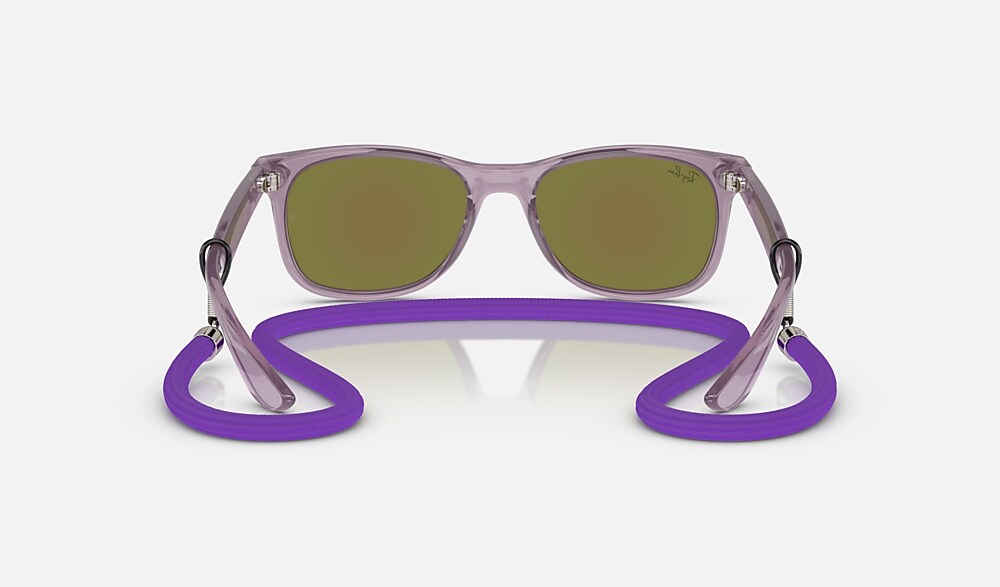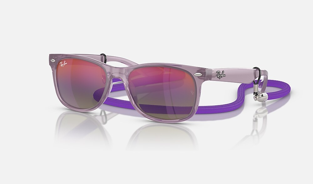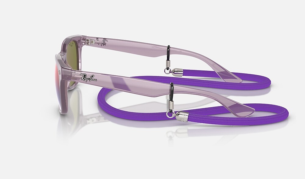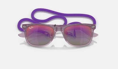 The new mini Wayfarer was made for the beach with an ultra-lightweight frame and mirror sun lenses that offer 100% UVA and UVB protection. Discover new color combinations inspired by the sun, sea and sand, with matching lanyards and the classic Ray-Ban logo on the side for an authentic touch.