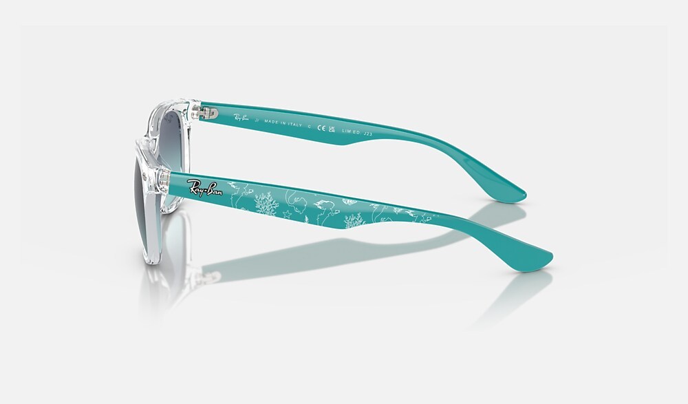 The timeless New Wayfarer meets Disney’s princess of the sea, The Little Mermaid. The special edition transparent frame is paired with never-seen-before blue-aquamarine gradient lenses and the temple tips are etched with Ariel’s iconic silhouette, alongside emblems from her magical underwater world. Every pair comes in an exclusive aquamarine case and black box, complete with a black cleaning cloth and certificate of authenticity to add to your Disney collection.