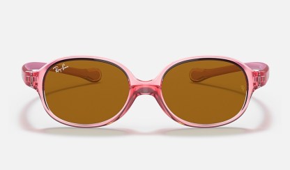 Ray-Ban iconic optical frames now come in a new sun version for babies and children up to three years. Playful and in glossy colours, they reflect a fun shine while also protecting little eyes. Ultra-resistant, light and safe, this pair is available in a wide variety of transparent colours.