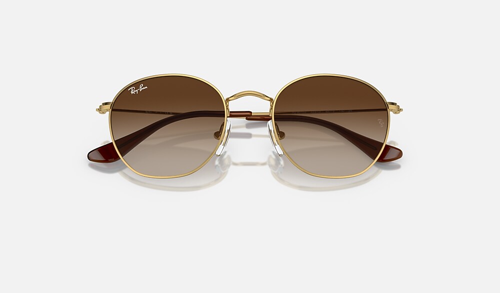 Ray-Ban RB9572S Rob Kids sunglasses is a new, super stylish frame for kids. The metal gold frame with gradient brown lenses is designed to last, featuring reinforced flat arms for increased strength and durability. Ray-Ban RB9572S Rob Kids Sunglasses are the perfect choice for active kids who want to look cool and protected, all day long.