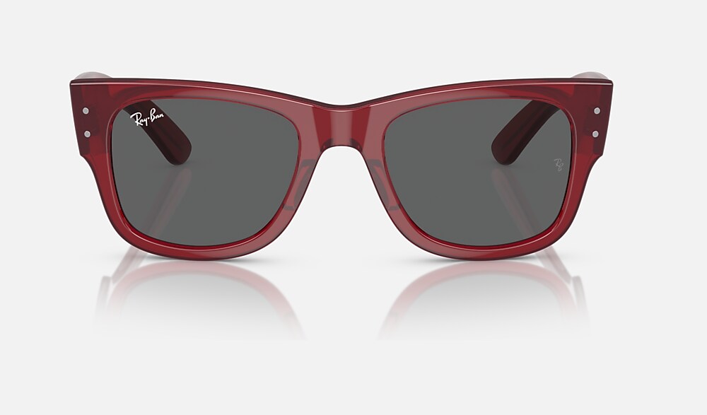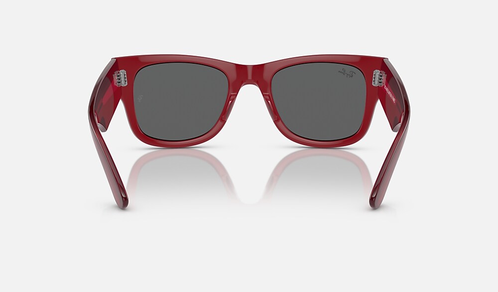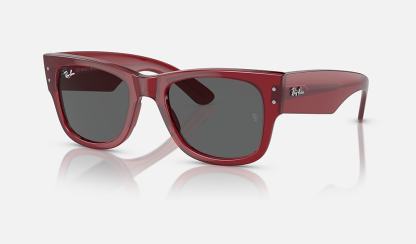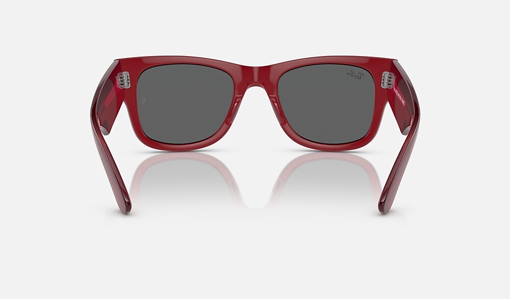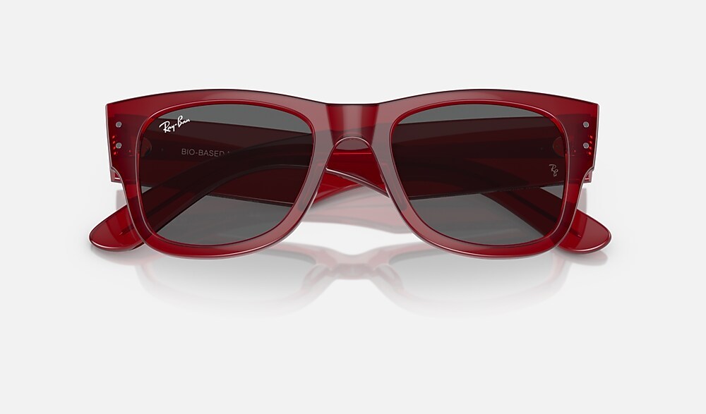 Meet Ray-Ban Mega Wayfarer Bio-based RB0840S sunglasses, the latest addition to our bio-based Style collection. Crafted from bio-acetate having 67% bio-based carbon content, these oversized Sunglasses are an alternative to the classic Wayfarer model. Join the revolution with the lenses in dark grey and the frame in transparent red.