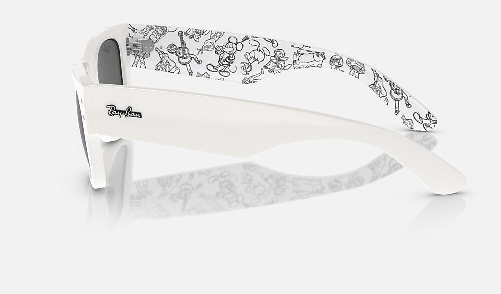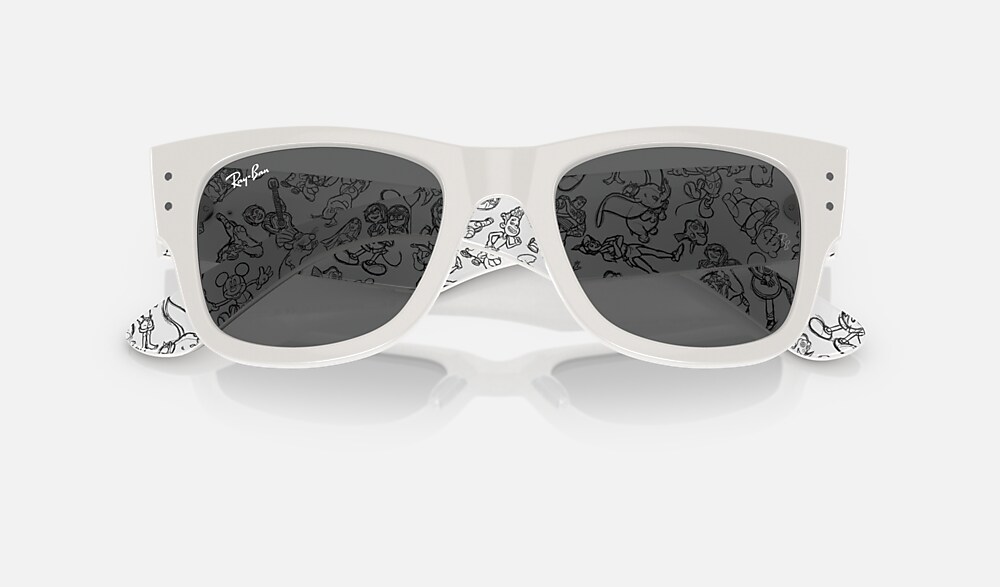 This special edition Mega Wayfarer marks 100 years of Disney in a big way. The oversized temples feature silhouettes of all your favorite classic characters in a black Disney pattern on white frames, with dark grey lenses. With only a limited number of pairs available, they're every Disney fan's dream shades.
