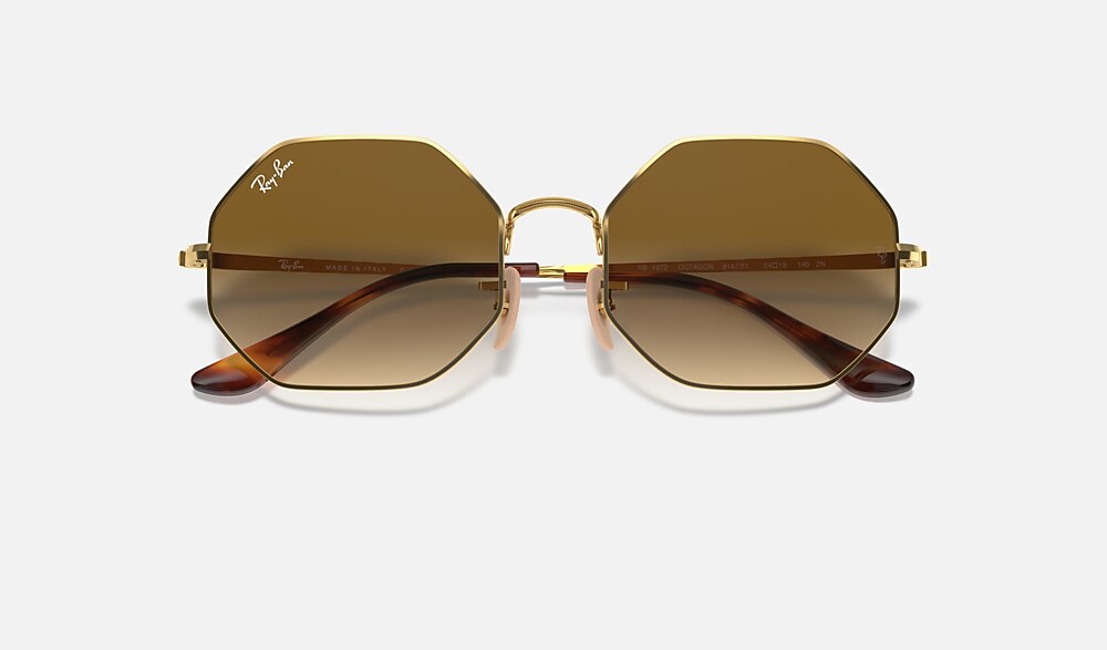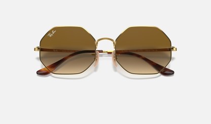 A past model is brought back with these eye-catching octagon lenses. Straight out from the '70s, these eye-catching frames remain a sleek choice, available both in gold and silver shades, with matching acetate temple tips for a full-metal look. The green, blue, grey, and brown lenses in solid and gradient colors complete the picture and ensure optimal visual clarity. If you further add the Original Ray-Ban golden logo, the Octagon 1972 won’t let you go unnoticed.