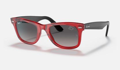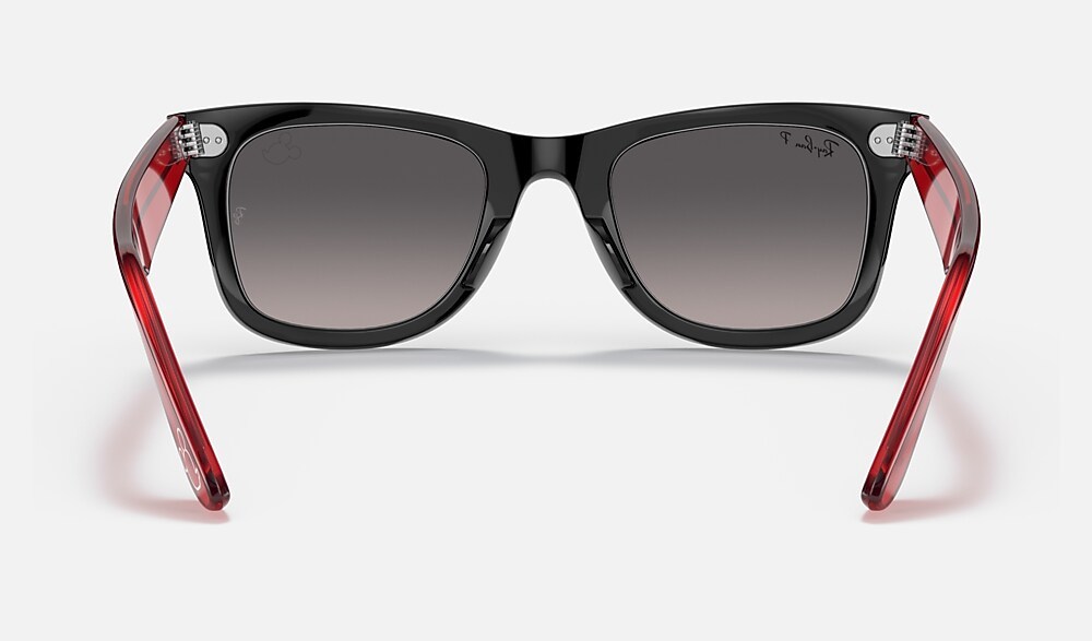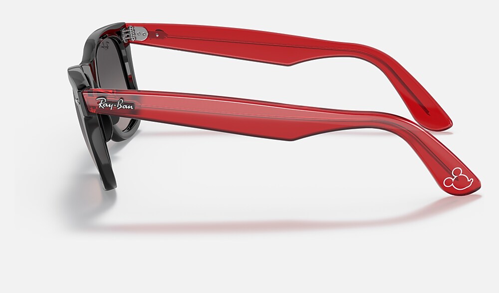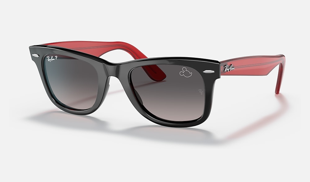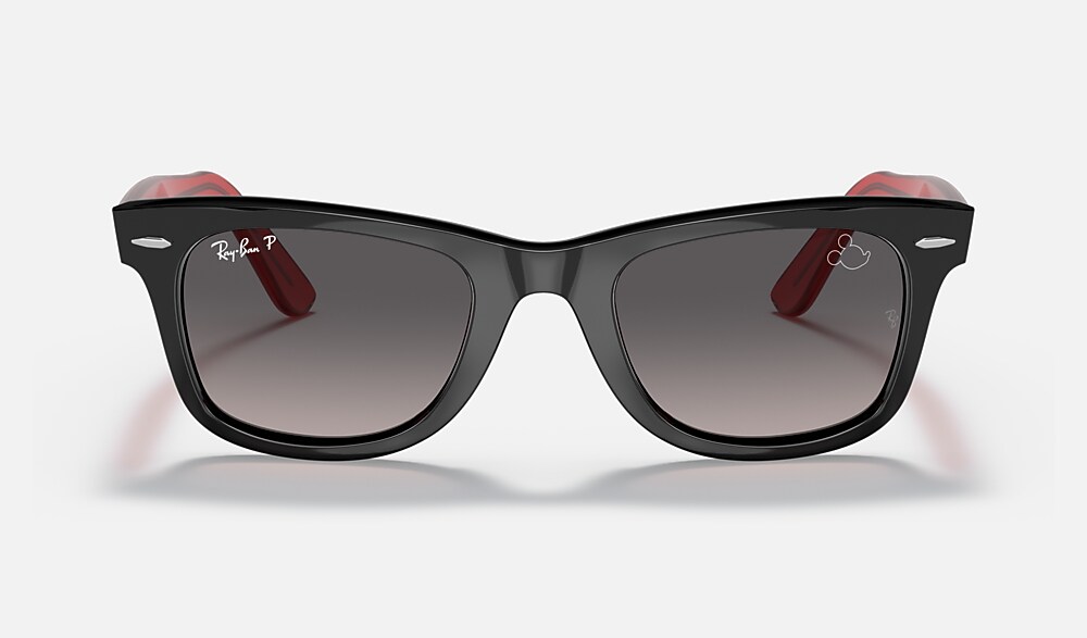 From the rock revolution of the ‘60s to the forefront of hip-hop culture... wherever there’s style, there’s the Wayfarer. As a cultural icon, it meets its match with Disney’s Mickey Mouse whose silhouette is etched on the lens and temple tip of this new Ray-Ban X Disney style. RB2140 Wayfarer Mickey J22 comes in two color combinations, inspired by the classic palette of Black and Red, paired with Grey-Gradient Polarized lenses. Every pair comes in an exclusive red case and box, complete with a certificate of authenticity. Limited pairs available.