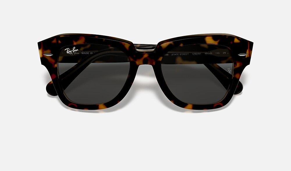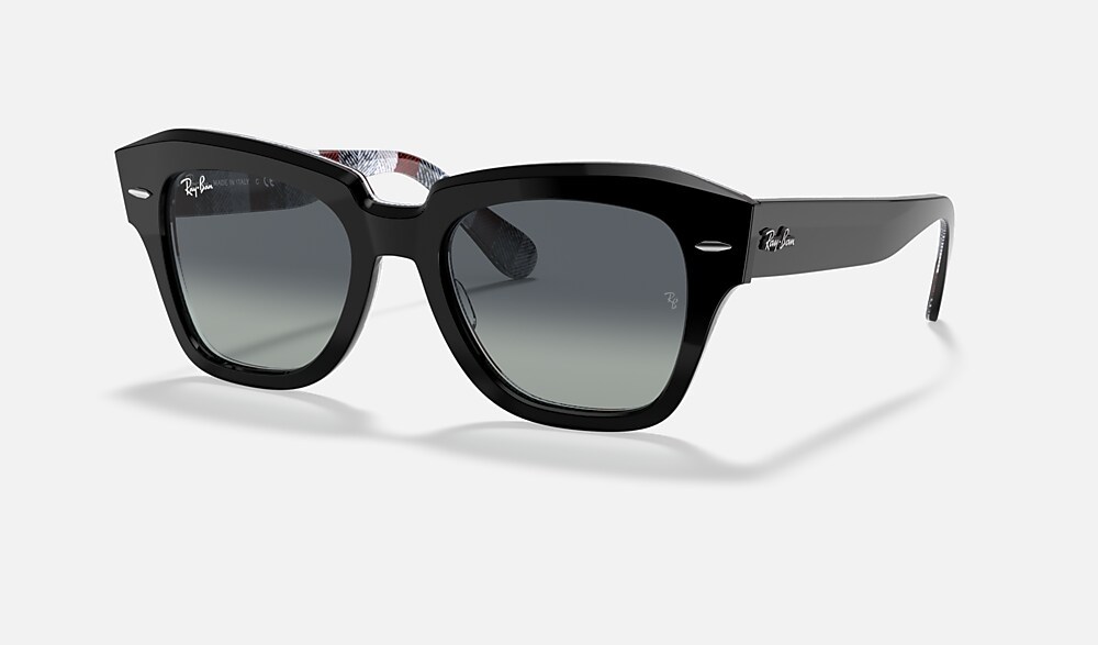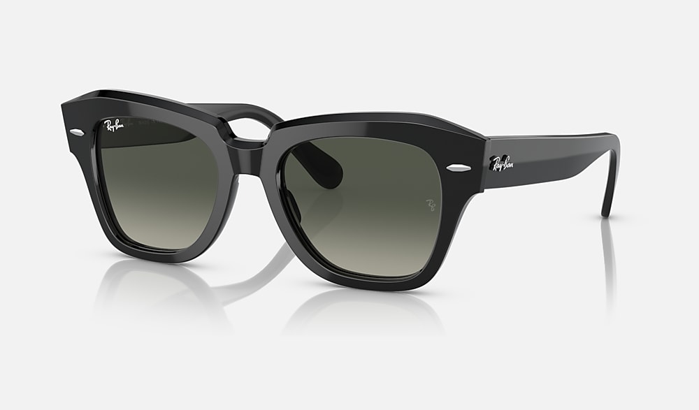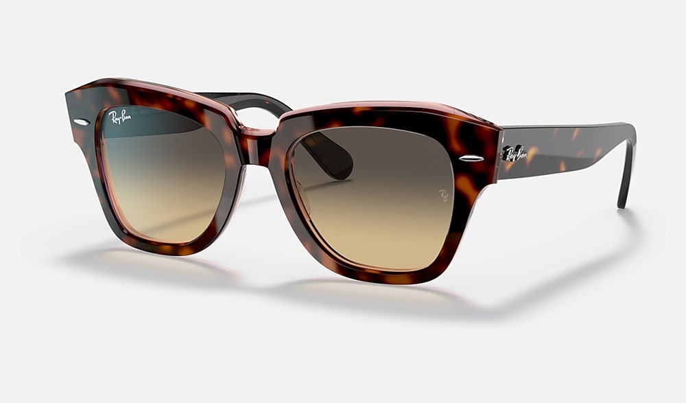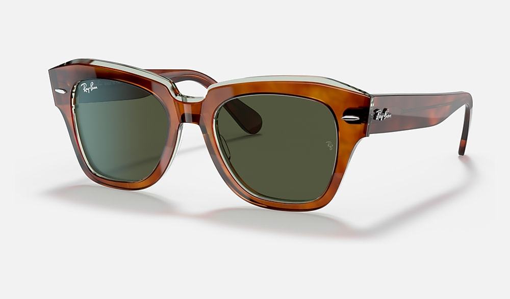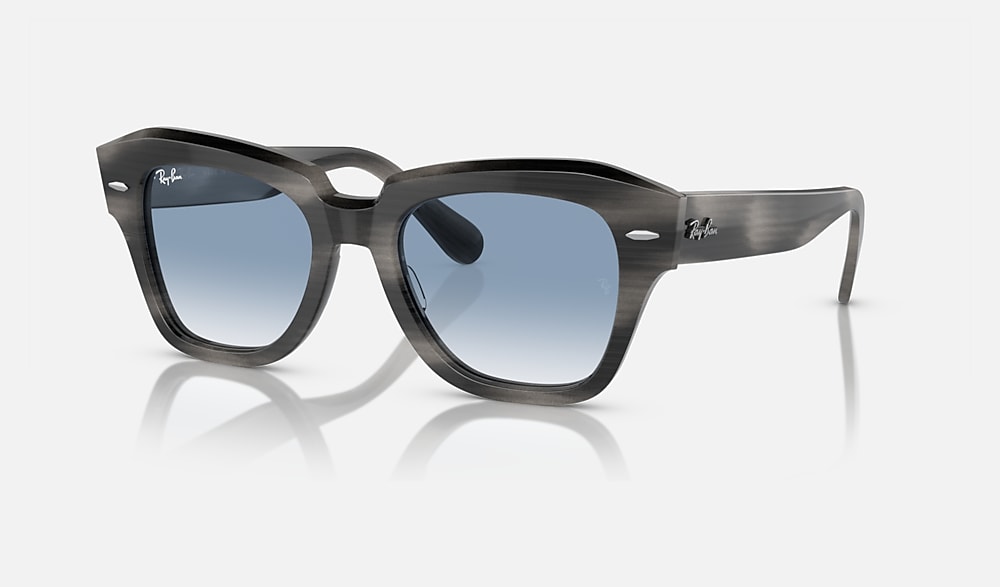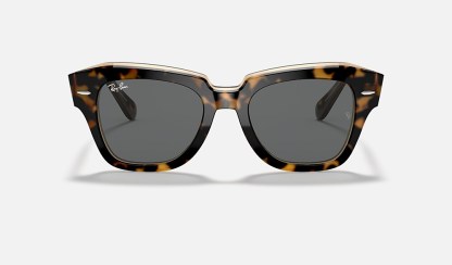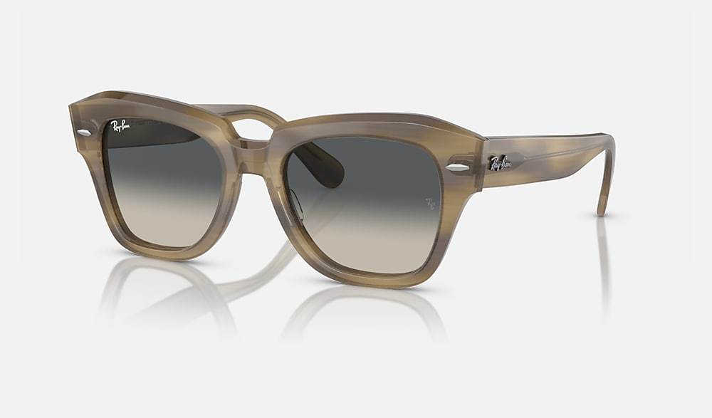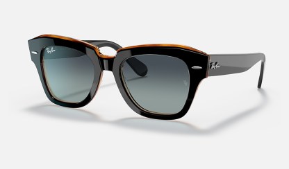 The Wayfarer family continues with the Statestreet. Its elegant, squared shape, crafted from acetate and available in a selection of colours, creates a contemporary style. Dare to wear them in a range of colours, including solid and bilayer options, combined with classic, gradient or polar lenses. The on-trend acetate temple tips and Ray-Ban logo complete the picture.