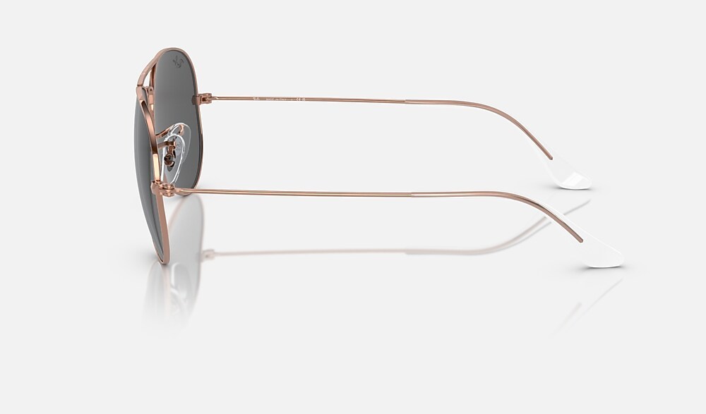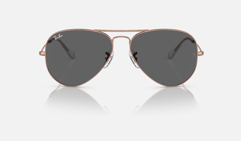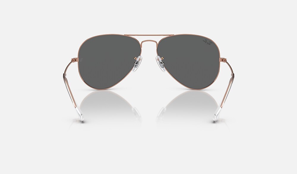 Ray-Ban RB3025 Aviator Rose Gold Sunglasses are a classic pilot shape that has been used by celebrities, musicians, and artists worldwide. The frame, made of metal, features classic dark grey lenses and a rose gold metal frame. The Aviator is available with polarized lenses to reduce glare and enhance color perception while protecting from UV rays.