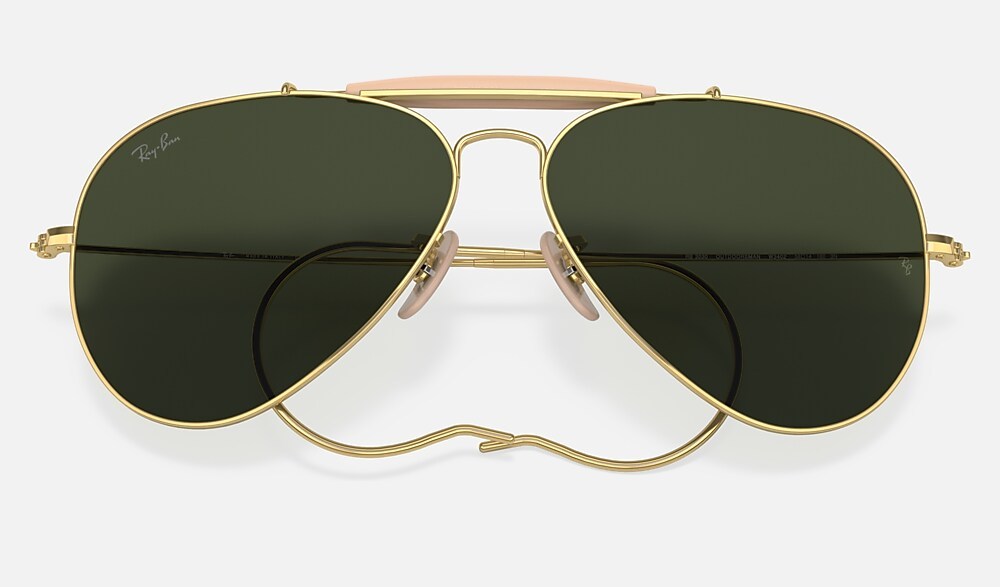 The decades passed, trends changed, but pilot shaped sunglasses remain unmistakabIy Ray-Ban. We’ve always flown alongside those who have their sights set on the sky and this capsule collection returns to our roots, with three new editions of our earliest metal designs: the Aviator (1937), the Shooter (1939), and the Outdoorsman (1939). Each style comes in Gold with classic G-15 Green lenses and the iconic signature logo etched in the same tone instead of the original white. The dedicated camel-coloured case has a slimline design made for travel. Whichever pilot you pick, you’re going to reach new heights.