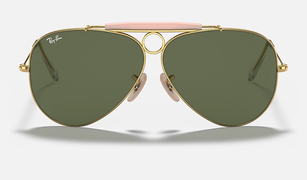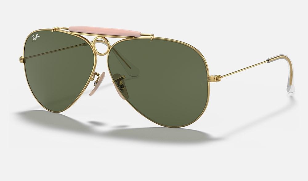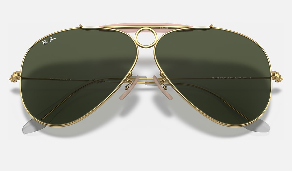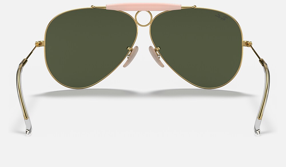 Ray Ban Aviator Shooter sunglasses offer a vintage and unique twist to the Aviator Classic. In line with the history of the Aviator, which was designed for aviator pilots, Aviator Shooter RB3138 is crafted with additional aviation-inspired features such as the vanity bullet hole in the center of the frame and especially thin temples to enhance wide peripheral vision. These vintage Sunglasses are built with a double bridge and acetate brow bar and traditional aviator pilot lenses.