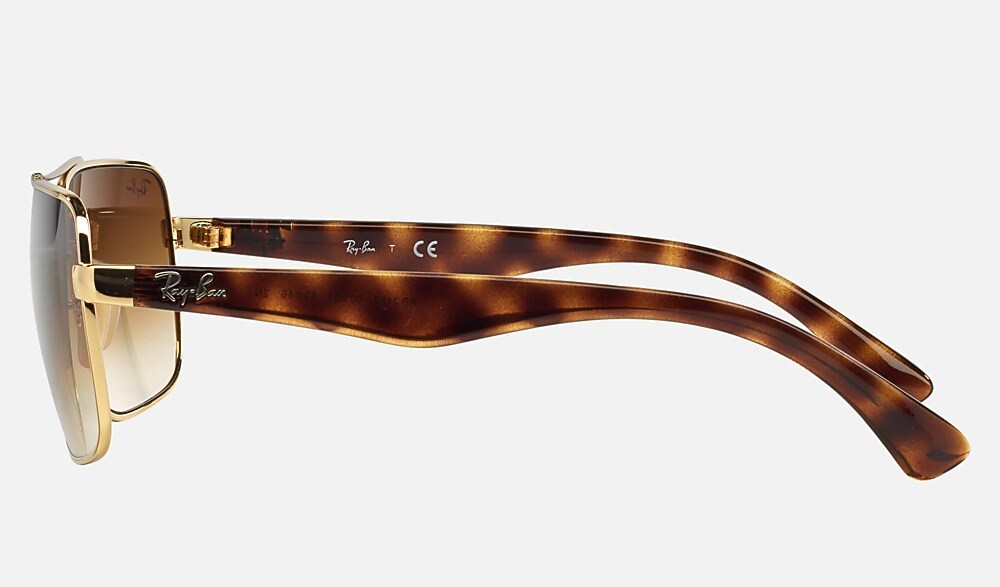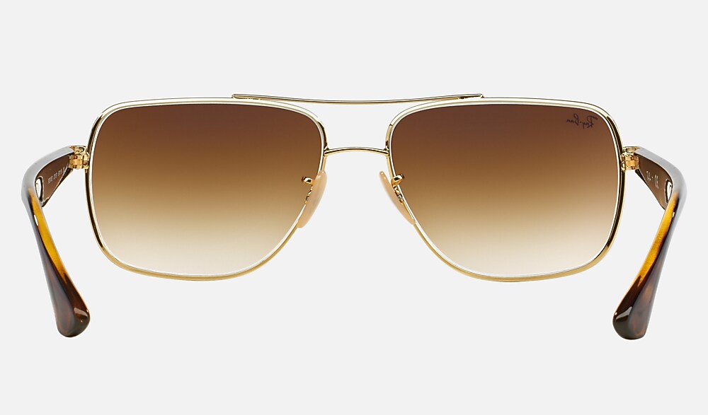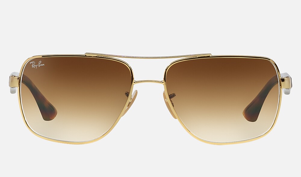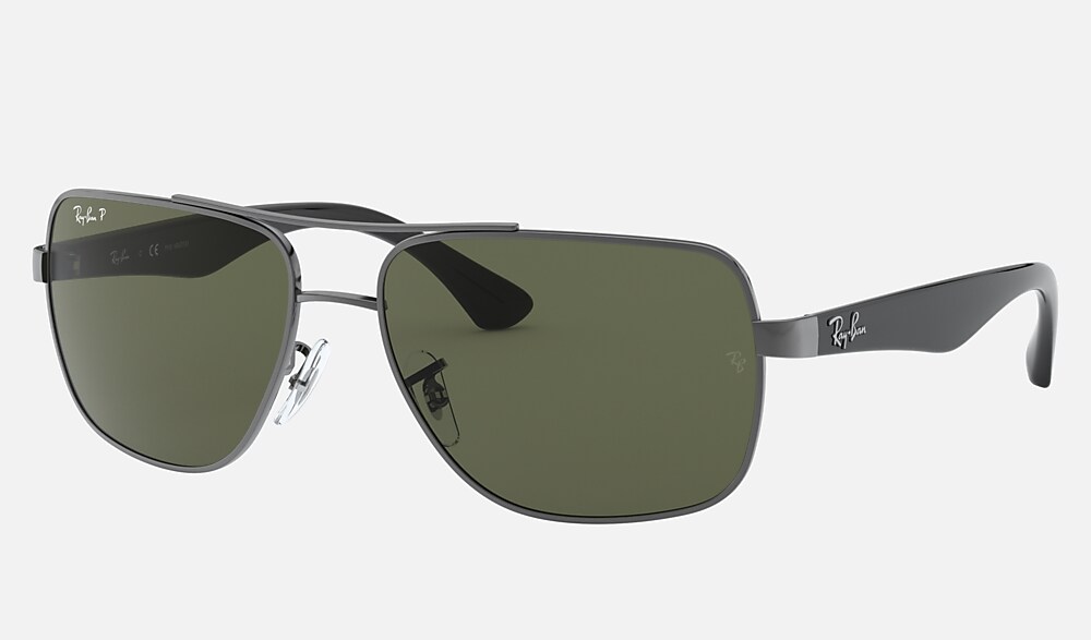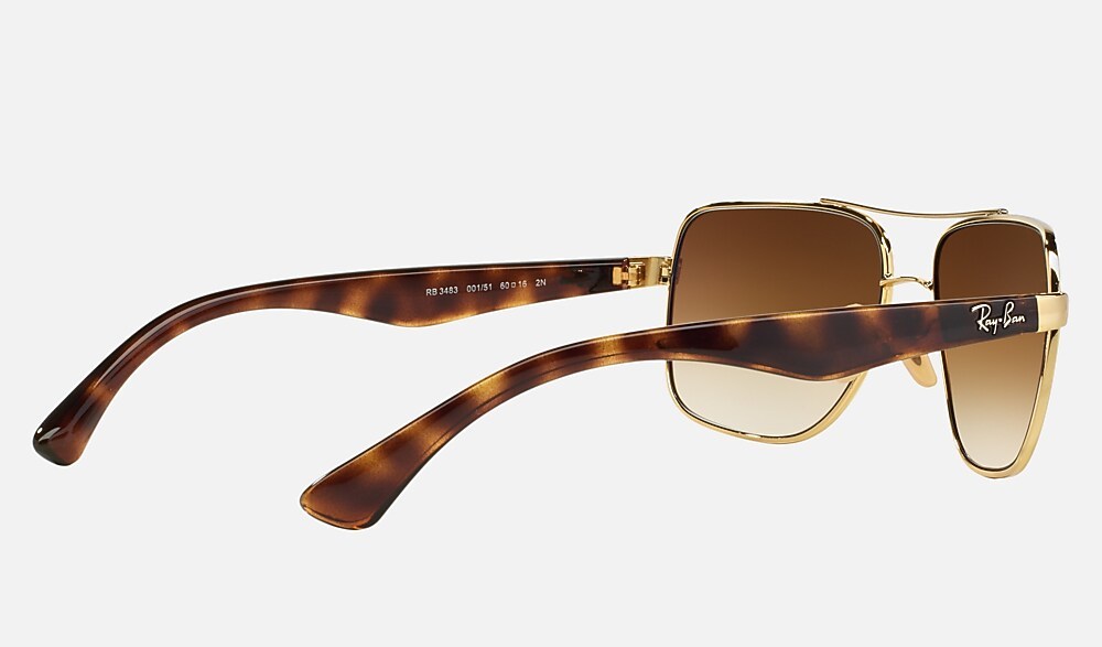 Ray-Ban ® RB3483 Sunglasses are a distinguished design with a classic metal double brow bar sitting on an oversized squared metal frame. Classic plastic temples create a timeless Ray-Ban look with uncompromisable quality. Decorated with a Ray-Ban signature logo on temples and lens, the adjustable nose pads provide you with a comfortable and customized fit. This model comes with this season's latest lens colors and treatments in polarized, gradient, and mirrored lenses. The universally flattering fit will look great on medium to large faces.