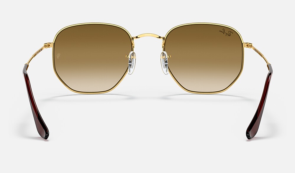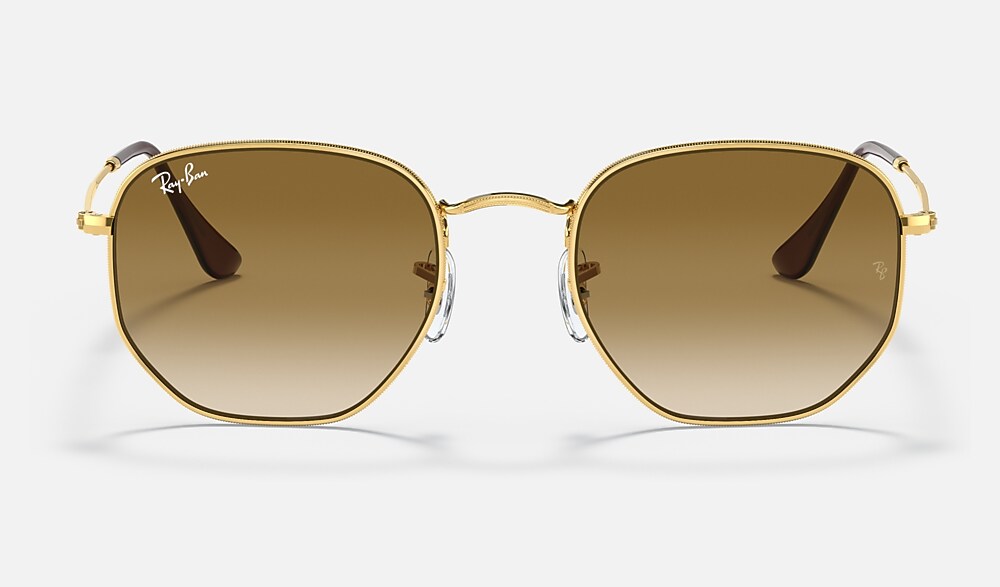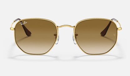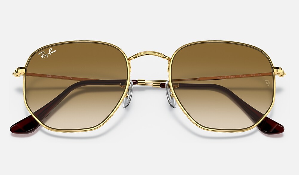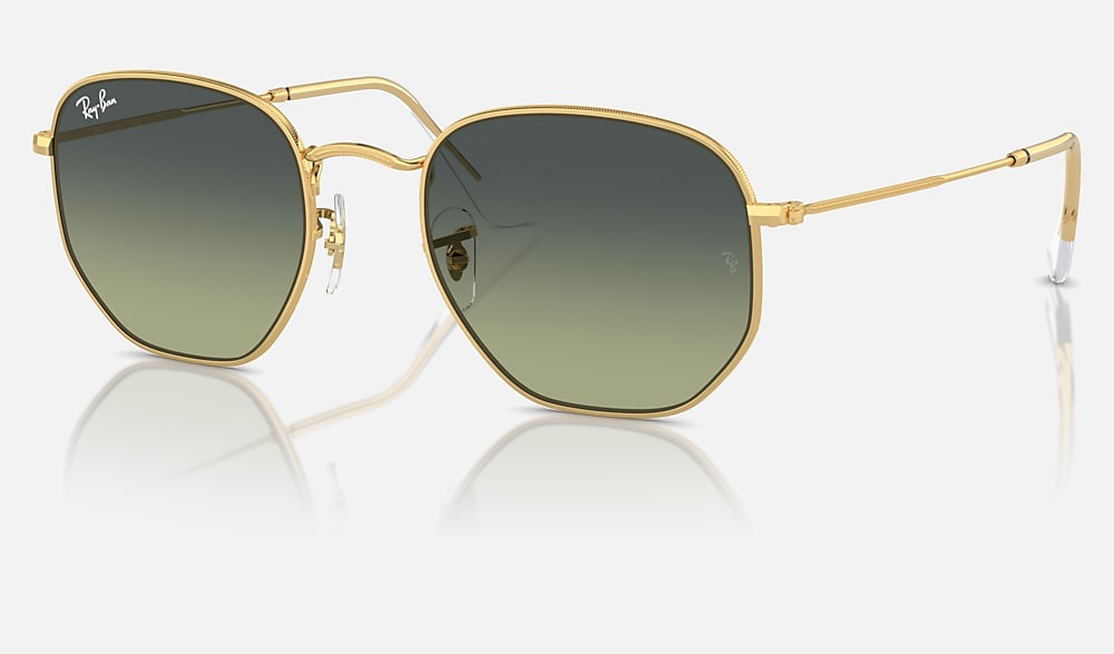 What do you get when you cross a circle with a square? You get the hexagonal RB 3548, the evolution of round featuring crystal lenses. This hexagonal metal shape features thin coined profiles on legend gold frames and temples. Experience the thrill of wearing an updated classic that will never make you feel like a square peg in a round hole. Available with Legend Gold lens logo, straight from the archive.