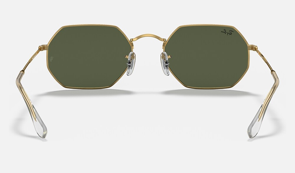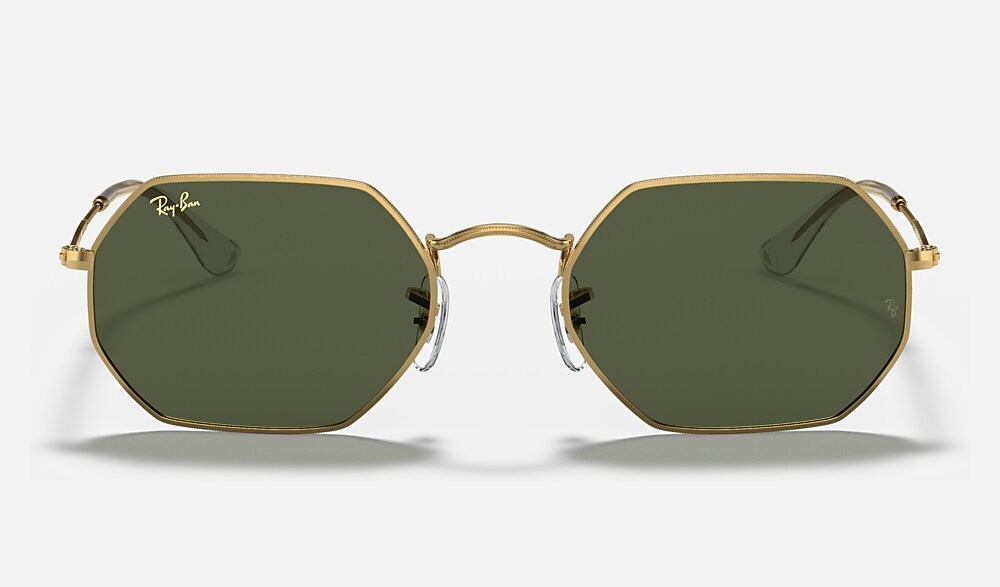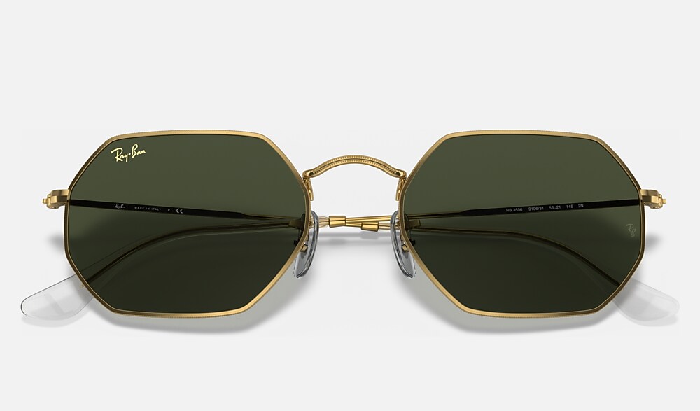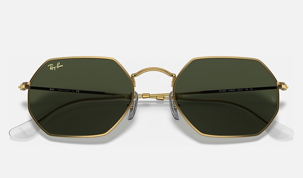 New shapes and trendsetting shades evolve the legendary profile of a retro classic with unique personality: Round goes Octagonal! Simultaneously underground, deluxe and revolutionary, this unconventional new octagonal shape reinvents the fine golden metal profiles of Ray-Ban classics with new legend gold frames and temples to reflect the daring spirit of contemporary icons with a fresh perspective on sophistication. Available with Legend Gold lens logo, straight from the archive.