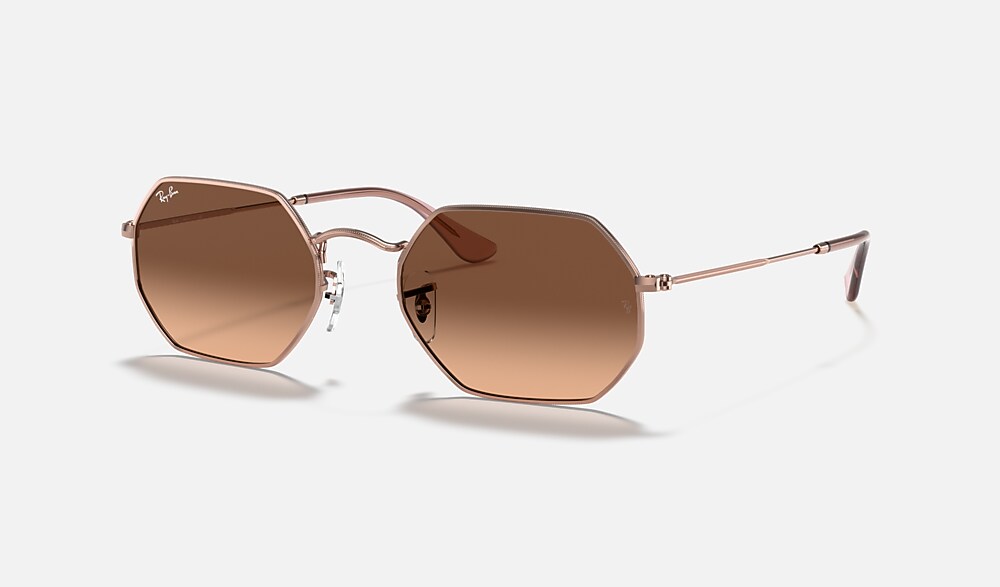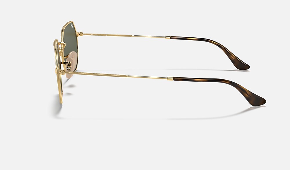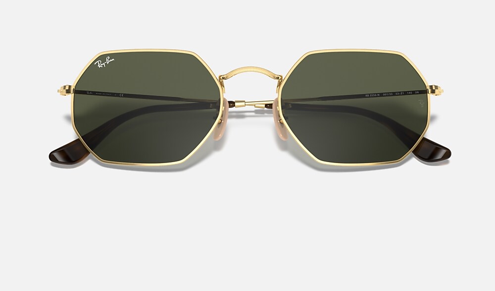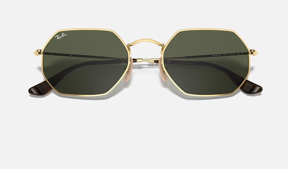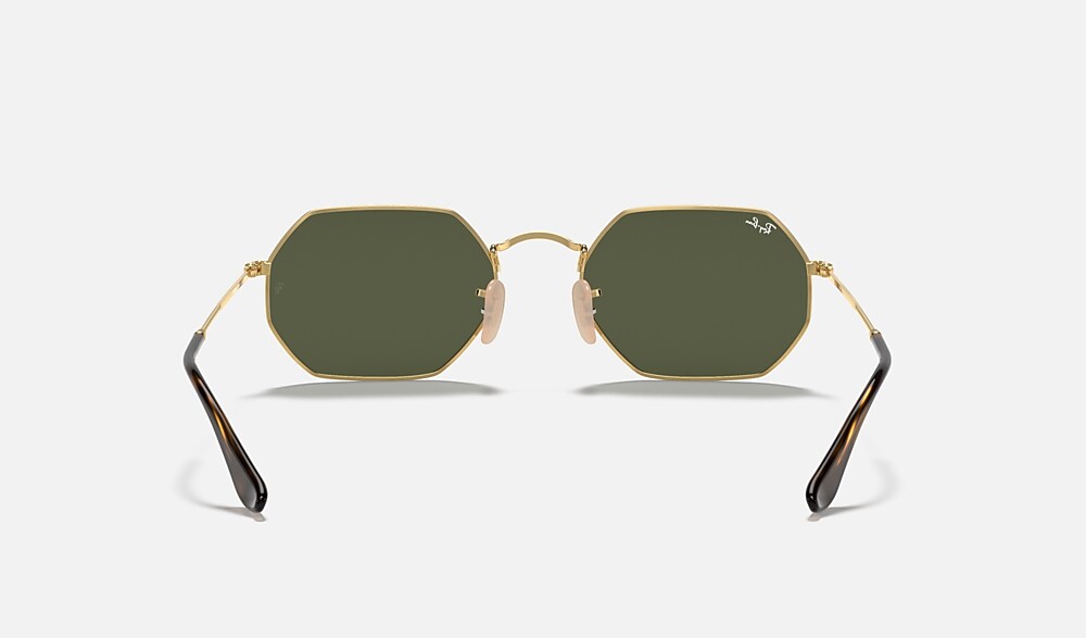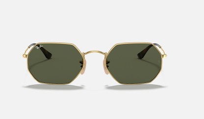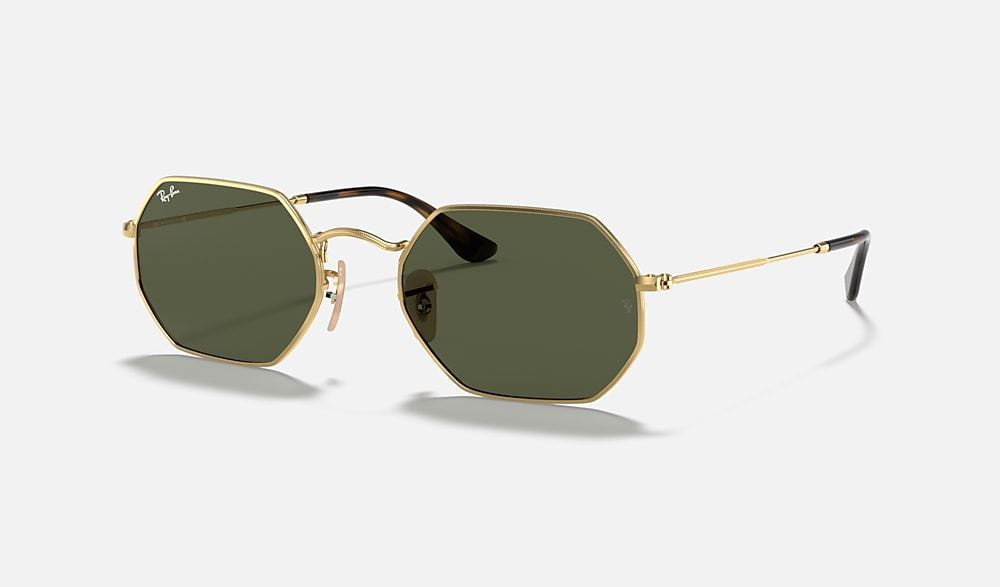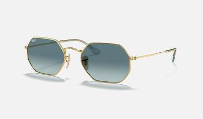 New shapes and trendsetting shades evolve the legendary profile of a retro classic with unique personality: Round goes Octagonal!Simultaneously underground, deluxe and revolutionary, this unconventional new octagonal shape reinvents the fine golden metal profiles of Ray-Ban classics with new premium quality flat crystal lenses in cool flash colors to reflect the daring spirit of contemporary icons with a fresh perspective on sophistication. Styled in resilient metal with extra-slim tubular temples, this lightweight, versatile golden frame is also available with unmistakable G15 and B15 options for a more classic take on edgy urban design.