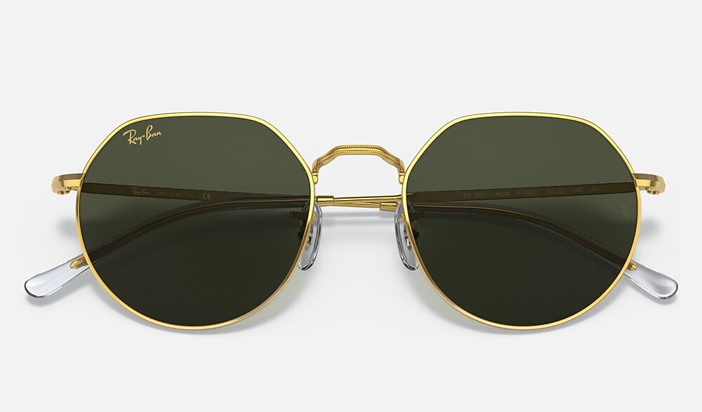 Ray-Ban RB3565 Jack series of Sunglasses is a classic. The frame, made of metal, has been worn by everyone who is anyone, so you know it's good. The green lenses on the gold frame pair perfectly with the gold temples.