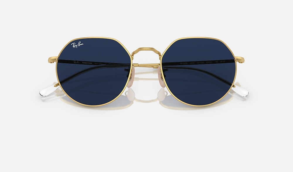 As edgy as it is smooth, the Jack is pure Ray-Ban fusion. The slim metal frame is a riff on two i-shape icons – Round and Hexagonal – and comes with Transitions® lenses that adapt to all light conditions for optimum vision performance – inside and outside, day to night, up a mountain or in front of digital devices.