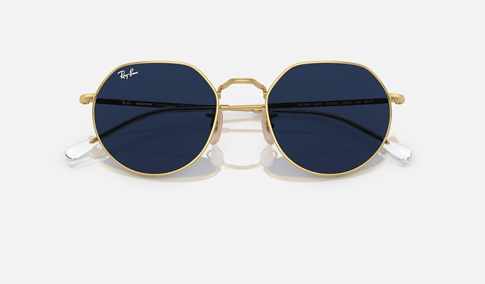 As edgy as it is smooth, the Jack is pure Ray-Ban fusion. The slim metal frame is a riff on two i-shape icons – Round and Hexagonal – and comes with Transitions® lenses that adapt to all light conditions for optimum vision performance – inside and outside, day to night, up a mountain or in front of digital devices.