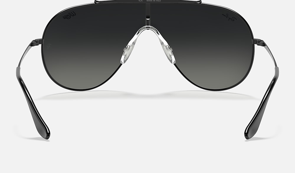 Give your look a lift in Wings, our newest icon shape. Straight out of the 80’s, Wings is back with flat temples and bridge. It’s topped off by our one-piece nose pad and the legendary Wings logo on the lens. Cop it with either a solid or gradient lens in classic staple Ray-Ban color combinations.