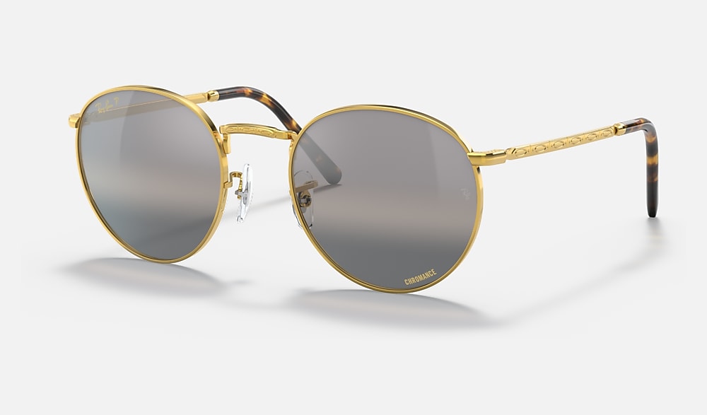 Launched in 1989, the Round was immortalised by the countercultural thinkers of the past. Today, the New Round, an evolution of our iconic Ray-ban style, stands strong and subtle with premium engravings on the temples. Available in a range of colour combinations including chromance crystal lenses.