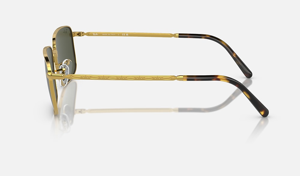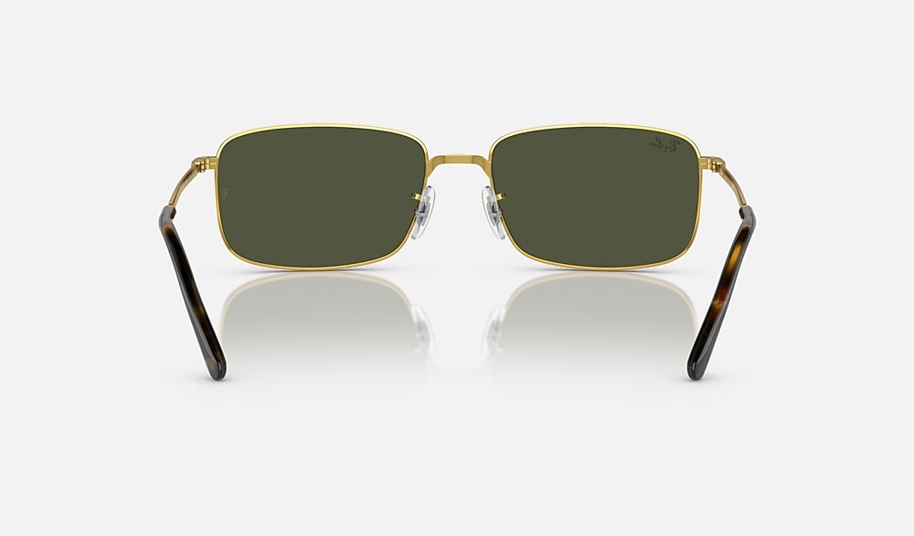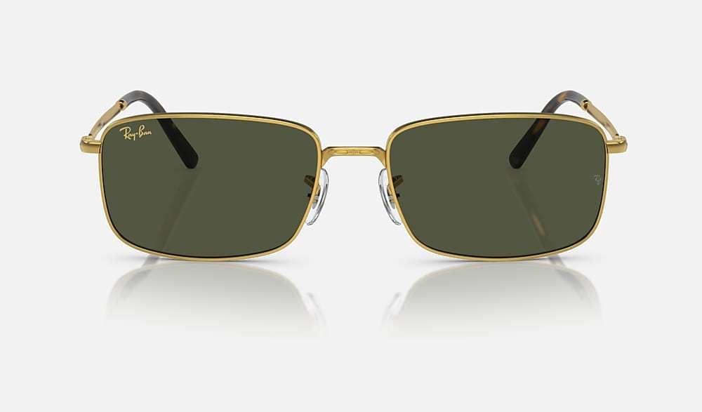Ray-Ban RB3717 Sunglasses are a classic style designed for all genders. The metal frame with gold temples and green lenses exudes a refined, polished look. With the double D rivets adding to its overall appeal, this style will not fail to impress.