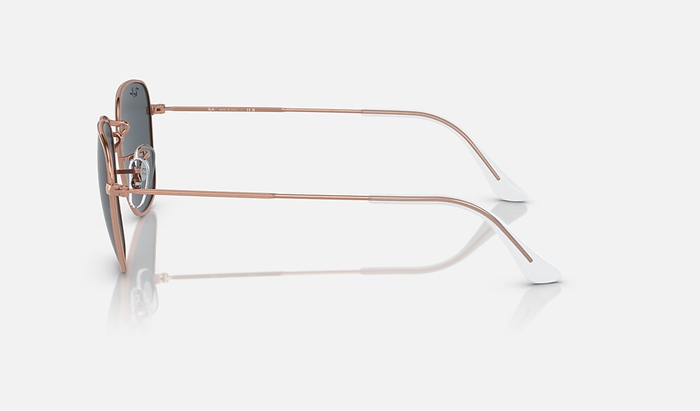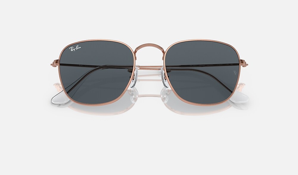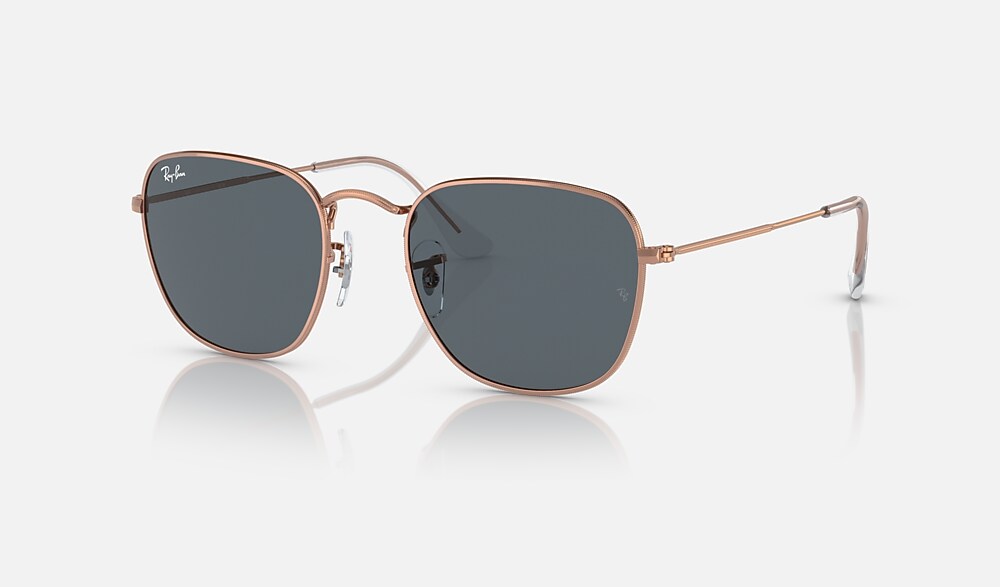 Ray-Ban RB3857 Frank Rose Gold Sunglasses are a classic shape for the modern age. The metal frame, with its polished rose gold metal finish and classic blue lenses, has been a favorite among celebrities, musicians, artists, and those with an impeccable fashion sense. This model comes with rose gold metal temples and classic blue lenses.