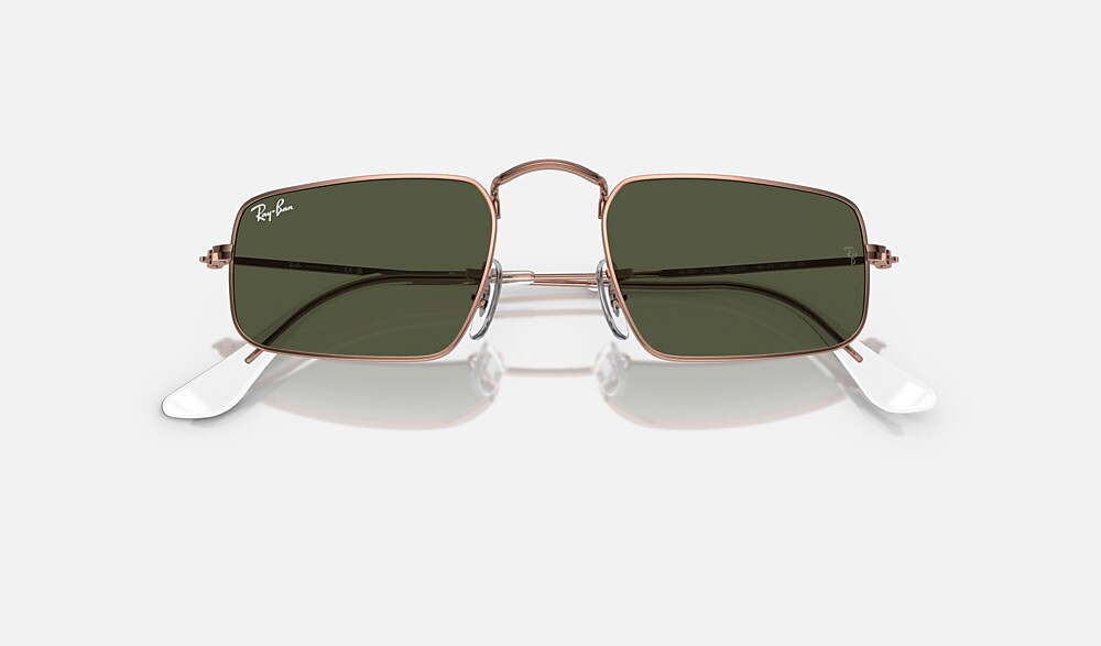 Ray-Ban RB3957 Julie Rose Gold Sunglasses are the answer if you are looking for a lightweight metal frame with classic green lenses. This frame, designed for all genders, is ideal for everyday wear. The metal frame with polished rose gold temples gives it a fresh, contemporary vibe.