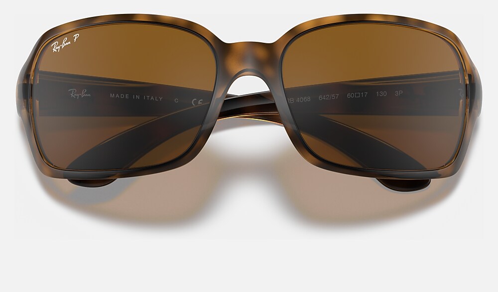 The Ray-Ban ® RB4068 sunglasses are a classic square style in a full coverage wrap. The Ray-Ban lightweight propionate plastic Sunglasses feature crystal lenses and a polarized lens option.