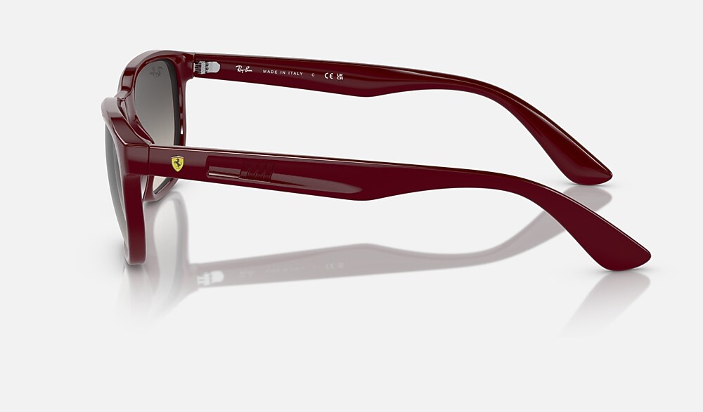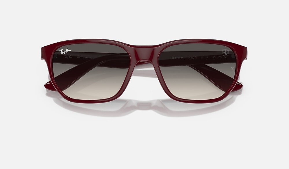 Ray-Ban RB4404M Scuderia Ferrari Collection Sunglasses are designed for an extraordinary driver. The frame is crafted from acetate and features dark red frame and temples and grey gradient lenses. These shades honor the legendary Italian racing team and its legendary leader, whose passion for racing inspired the design.